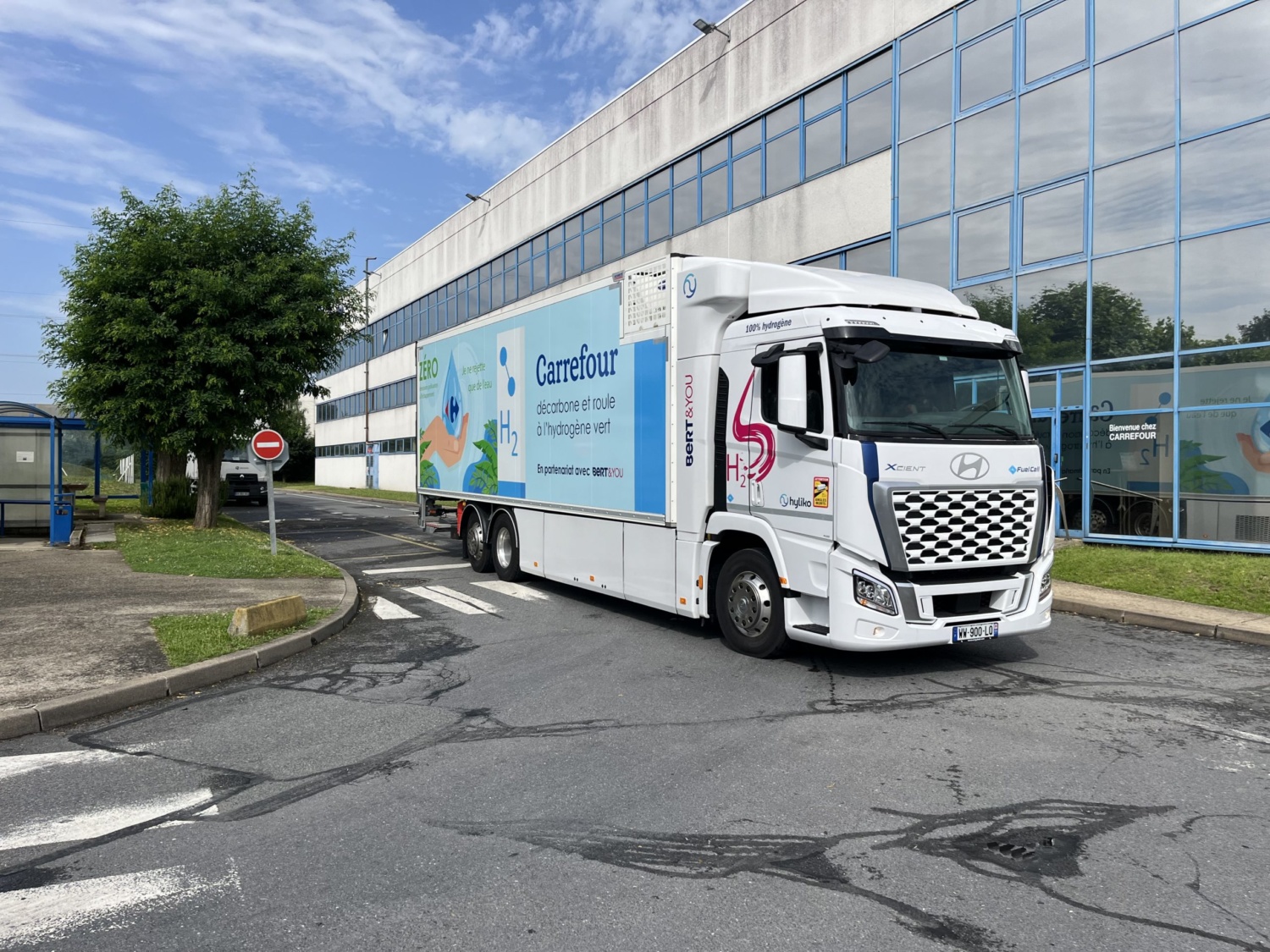 Pour rappel, nous exploitons au départ de notre agence TGB de Nemours 2 porteurs Hyundai 26T frigo 100% électrique alimentés par une pile à combustible nourrie à l’hydrogène. Avec 130.000 km parcourus, nos 2 véhicules ont ainsi évité le rejet de 78 tonnes de CO2. Cela fait de nous l’un des 2 transporteurs en France en capacité d’apporter un regard objectif sur l’hydrogène au service du transport routier. Avec un taux de service supérieur à 95%, nous pouvons dire que Bert et l’hydrogène, ça roule !