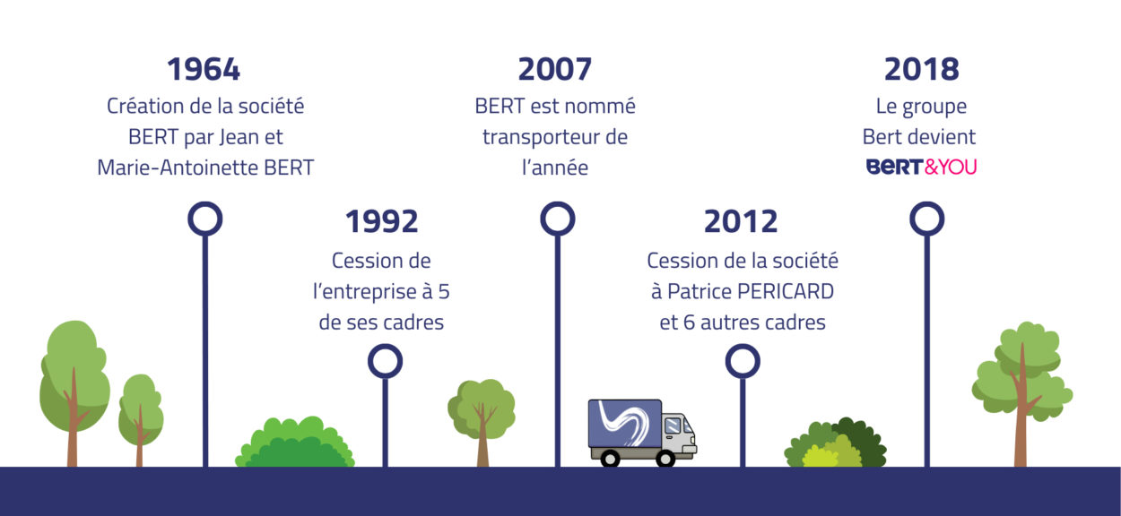 Chez BERT&YOU®, depuis 1964, on transporte ! Des produits manufacturés, industriels finis ou semi-finis, des matières premières en bâchés ou fourgon, en plateau ou porte-container, des denrées alimentaires, des voitures, des engins, des citernes, du gaz, du vin, des jus de fruits. Bref on transporte tout, ou presque ! Mais pas que. On stocke aussi, on gère, on prépare, on transforme, on trie, on emballe et on expédie vos commandes. Et en plus on vous offre le suivi en temps réel de vos produits. Qu’ils soient en cours d’acheminement dans l’un de nos 2.900 véhicules ou dans nos 500.000m2 d’entrepôts. Croyez-nous, depuis 1964, on a beaucoup appris. Parce que la confiance de nos clients, ça se mérite. Le siège de la société est situé à Albon (26140), ZA Axe 7 Ouest, dans la Drôme.