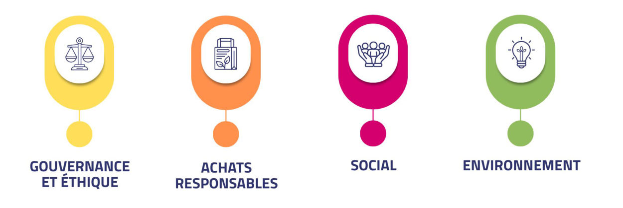 Pour cela, nous nous sommes fixés des objectifs sociaux, sociétaux, économiques et environnementaux articulés autour de 4 piliers fondamentaux. Ces piliers déterminent et affirment nos convictions, ils alignent nos ambitions avec nos réalisations. Grâce au travail collectif de nos équipes, notre entreprise et ses forces vives ont de la valeur car elles sont responsables et durables !